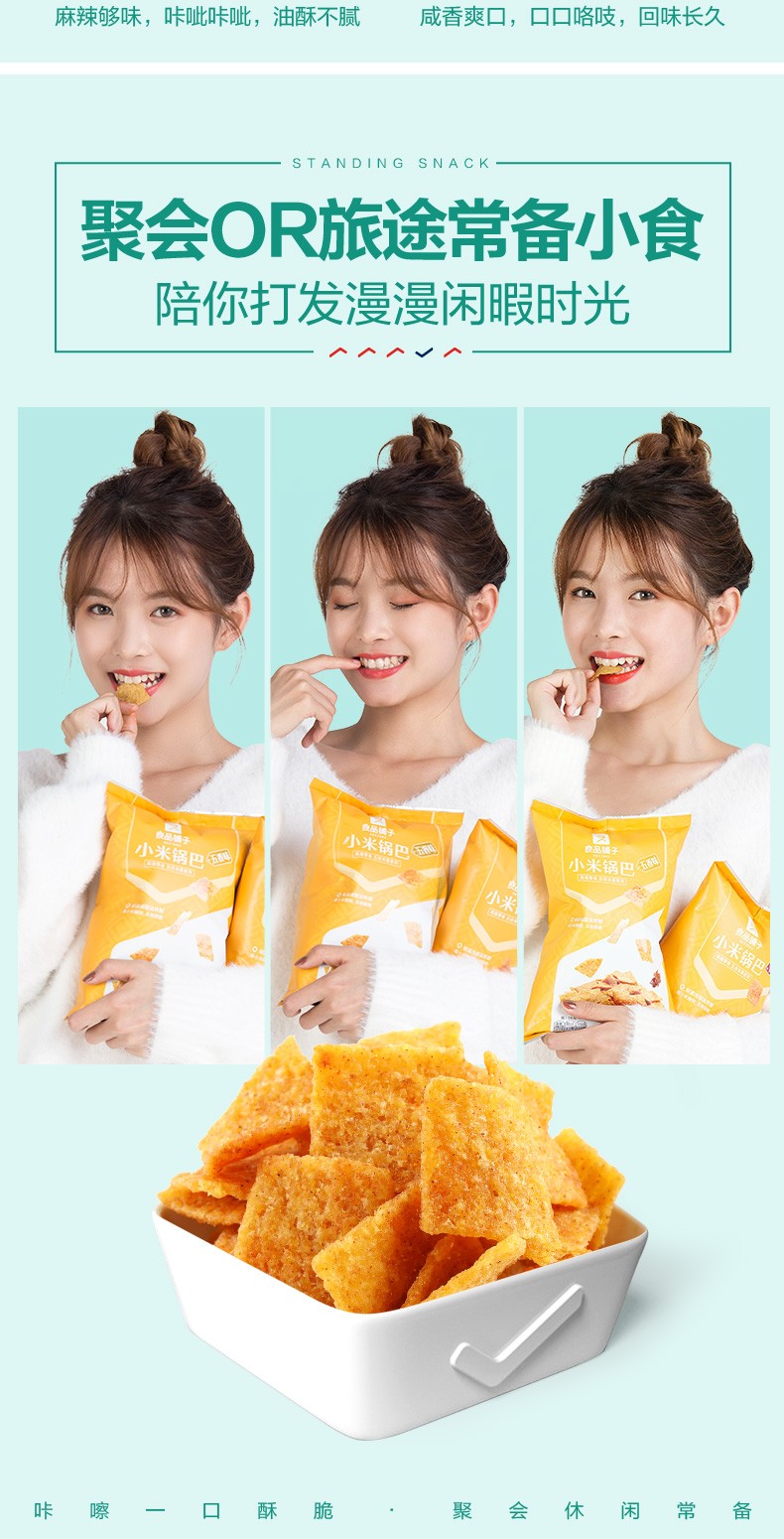 > 良品铺子 小米锅巴90g 粗粮杂粮饼干零食 麻辣味五香味饼干膨化零食休闲小吃 麻辣味