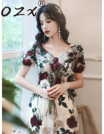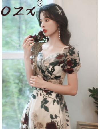 > O.Z.X轻奢原创女装刺绣连衣裙女2021年夏季新款宴会晚礼服平时可穿法式小众设计感裙子
