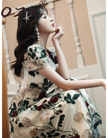 O.Z.X轻奢原创女装刺绣连衣裙女2021年夏季新款宴会晚礼服平时可穿法式小众设计感裙子
